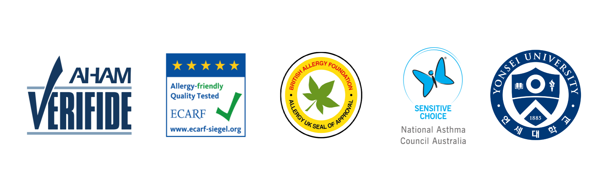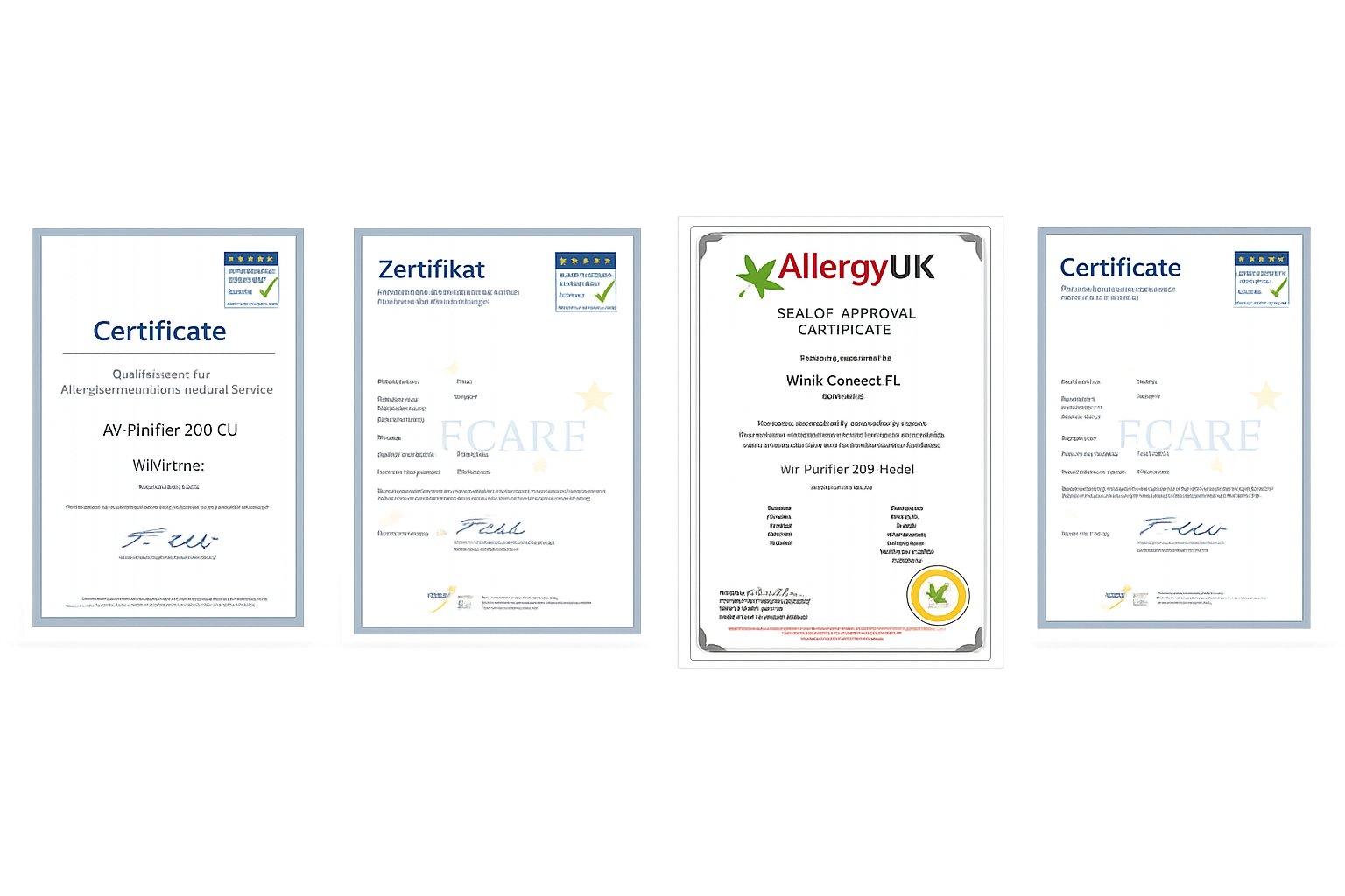 Produk WINIX memenuhi standar kualitas tinggi dan memegang sertifikasi penting seperti ECARF, Allergy UK, CE, RoHS, TÜV, Energy Star, dan AHAM.