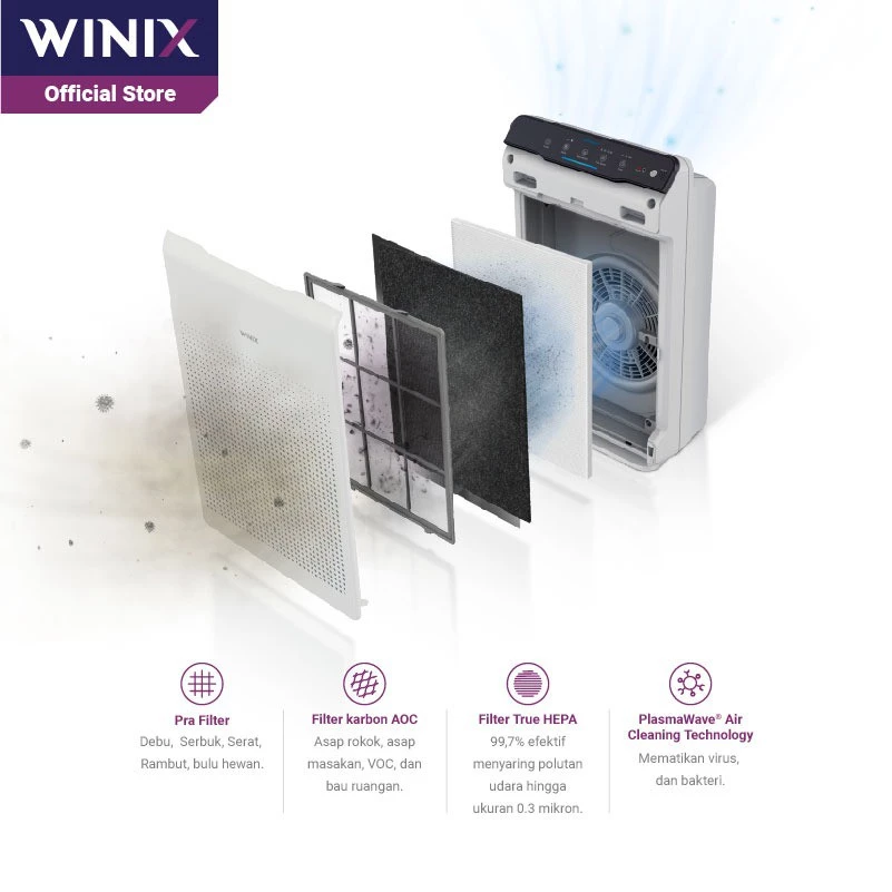 Filter WINIX H adalah satu set filter lengkap untuk pembersih udara WINIX. Filter karbon aktif mengurangi bau rumah tangga dan bau dalam ruangan yang kuat, seperti bau dari bau masakan, hewan peliharaan, asap rokok, dan senyawa organik yang mudah menguap lainnya. Filter True HEPA (HEPA13) berkualitas tinggi mampu membersihkan 99.97% dari semua partikel debu dan kotoran (sekecil 0.3 mikron), termasuk debu halus, serbuk sari, alergi, spora jamur, dan bulu.