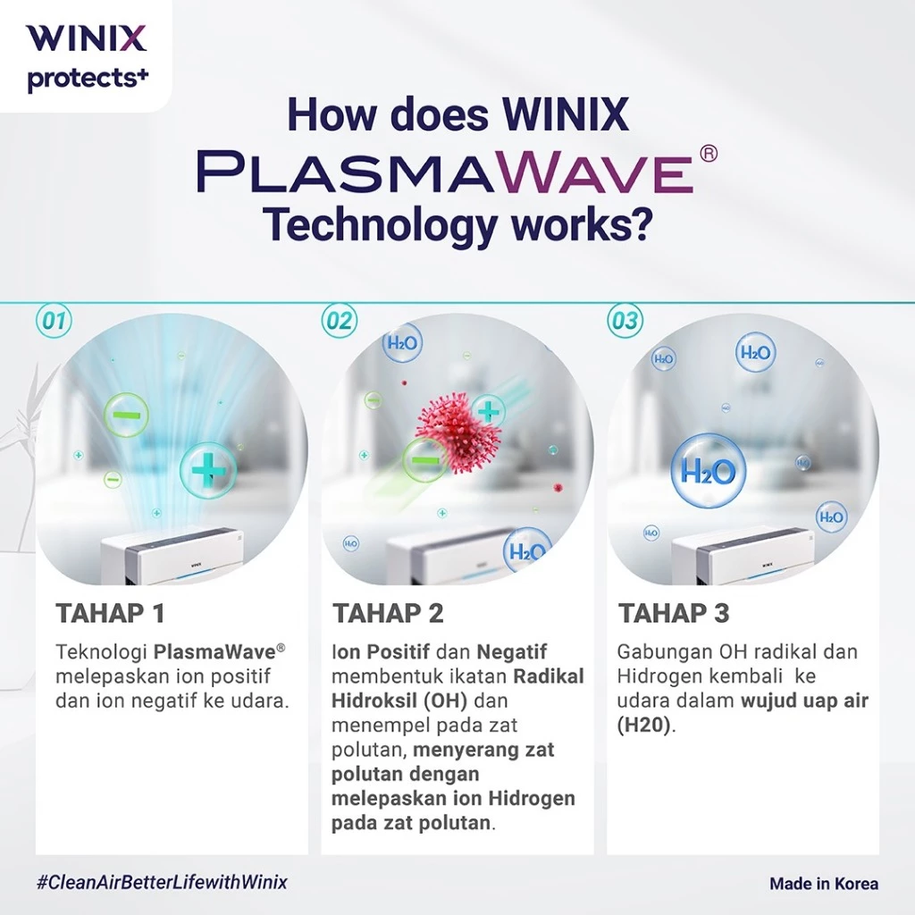 4. Teknologi Plasmawave : PlamaWave menciptakan Hidroksil yang dapat membantu mengurangi keberadaan Bakteri, Virus * di udara