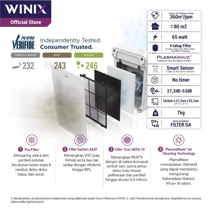 (* Berdasarkan uji laboratorium independen yang dilakukan pada Virus Influenza A H3N2, E. coli, Pseudomonas aeruginosa, Staphylococcus aureus, Salmonella typhimurium).