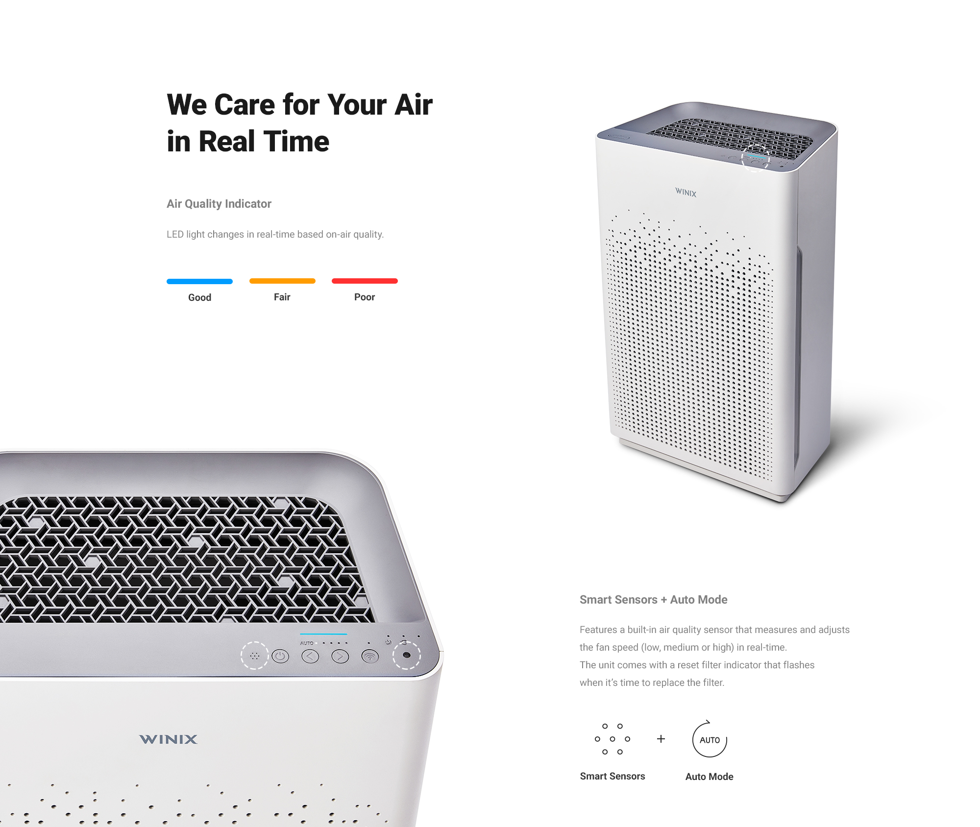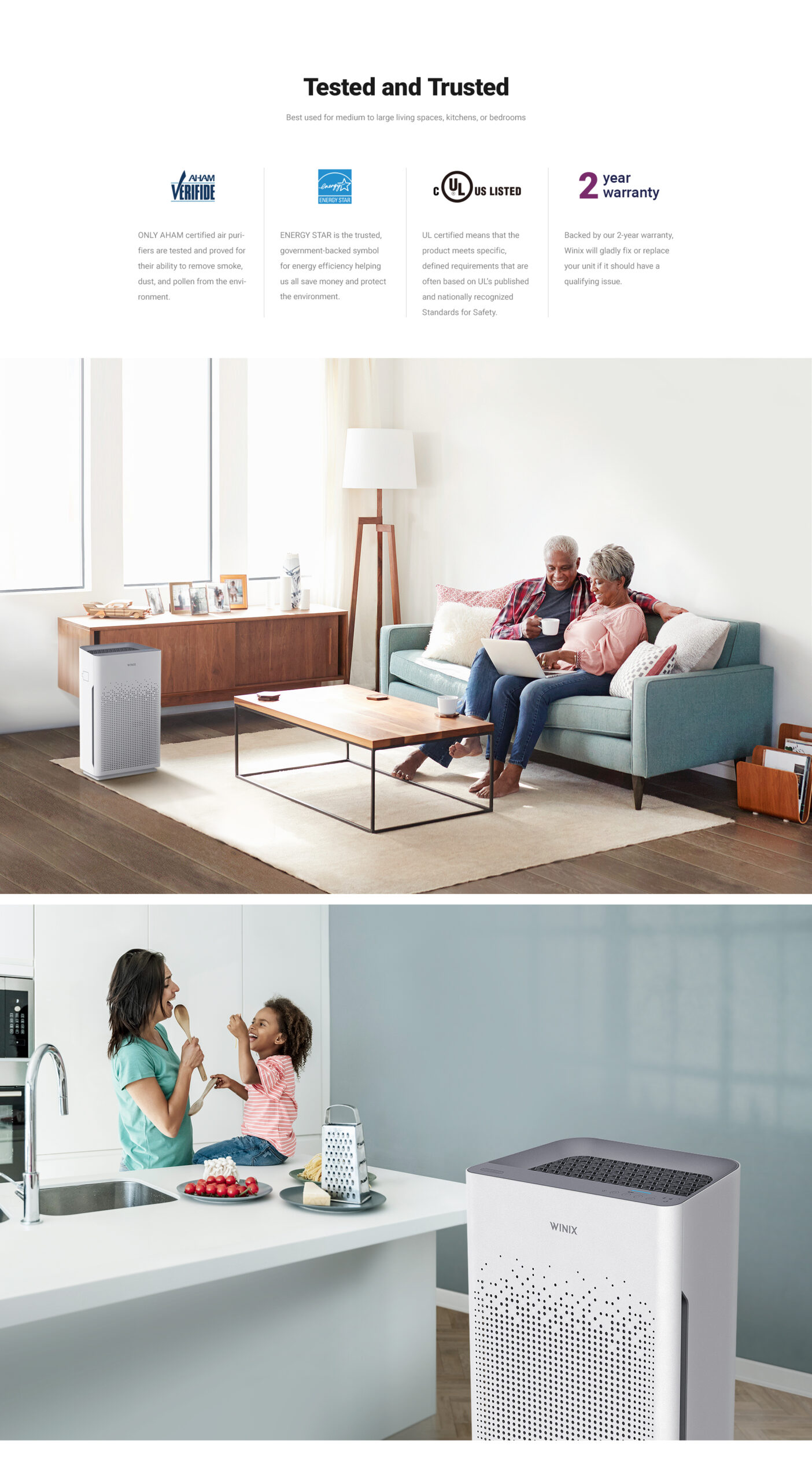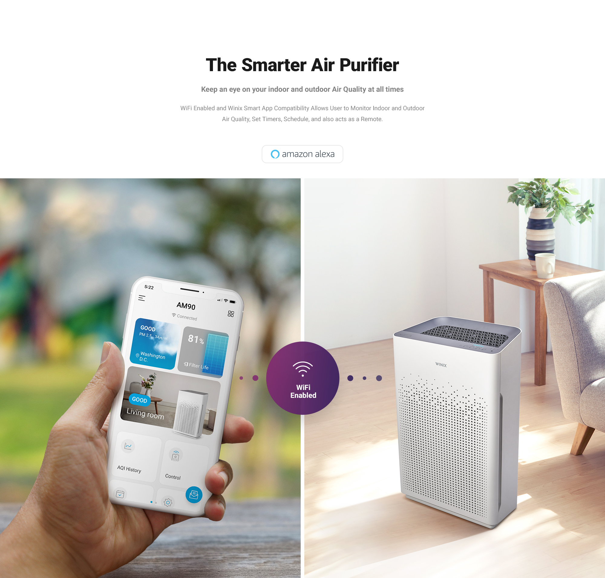 Air purifier WINIX ZERO-S is a powerful room bedroom air purifier for home that cleans your indoor air quality for 99.999%. This hepa filter air purifier is suitable for all rooms up to 100m². With a powerful CADR (Clean Air Delivery Rate) of 410m³ per hour, this best-air-purifier helps you to purify your living room, bedroom or office space from particulate matter, allergies, bacteria and viruses. WINIX ZERO-S air purifier is extremely effective for filtering pollen, house dust mites, particulate matter (PM2.5), pet hair, mold spores, household odors (VOCs) and cigarette smoke!